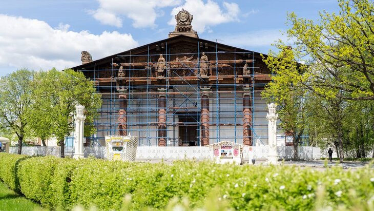 "Павильон построен в 1954 году для экспозиции Карело-Финской ССР. Здание украсили природными материалами из Карелии. Колонны портика облицевали красным гранитом, в отделке интерьеров использована карельская береза", – написал мэр в своем телеграм-канале.