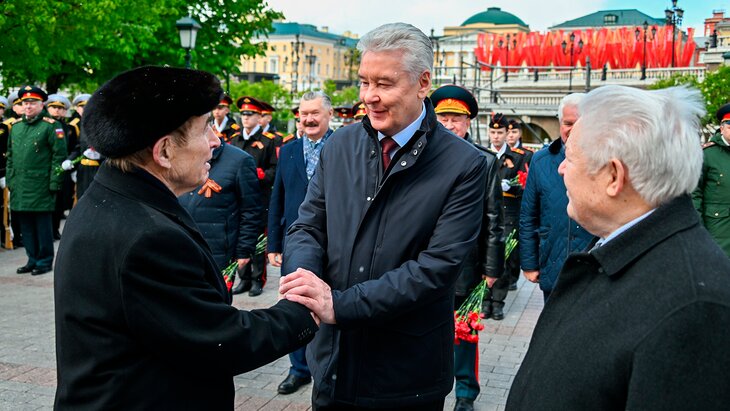 Сергей Собянин возложил цветы к Могиле Неизвестного Солдата в Александровском саду и к памятнику маршалу Жукову на Манежной площади перед Днем Победы.