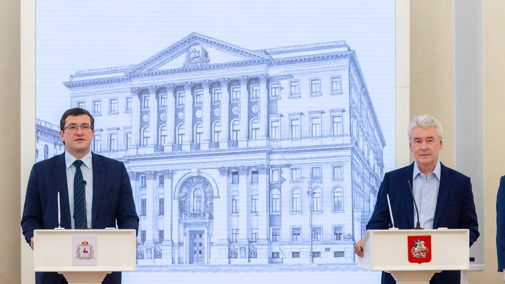 Сергей Собянин и губернатор Нижегородской области Глеб Никитин подписали соглашение по реализации взаимных мероприятий в рамках проекта "Навстречу 800-летию Нижнего Новгорода". В рамках соглашения горожан ждут выставки и патриотические акции, фестивали, спортивные, образовательные и культурные мероприятий, связанные с Нижним Новгородом.