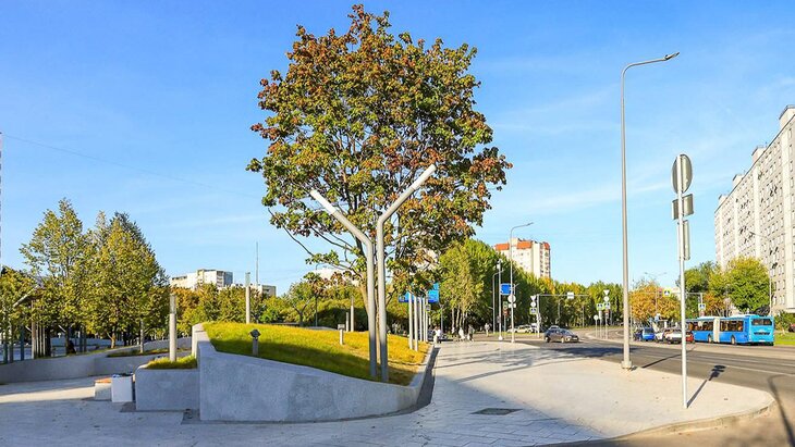 Кроме того, для удобства пассажиров наземного транспорта обновили остановочные павильоны и обустроили парковочные места для автомобилей. Сама территория была озеленена: теперь там разбит газон, на котором высажено более 320 деревьев.