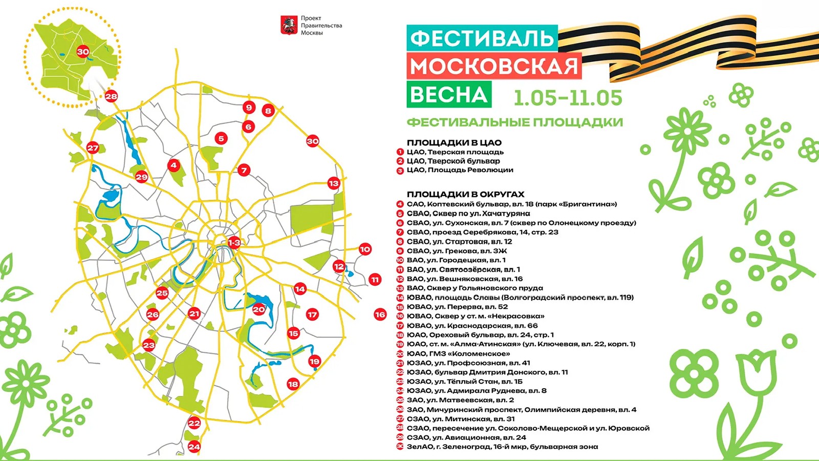 Сергей Собянин анонсировал начало фестиваля "Московская весна" с 1 мая. Мероприятие приурочено ко Дню Победы и Году единства народов России, написал мэр в своем канале в мессенджере МАХ.