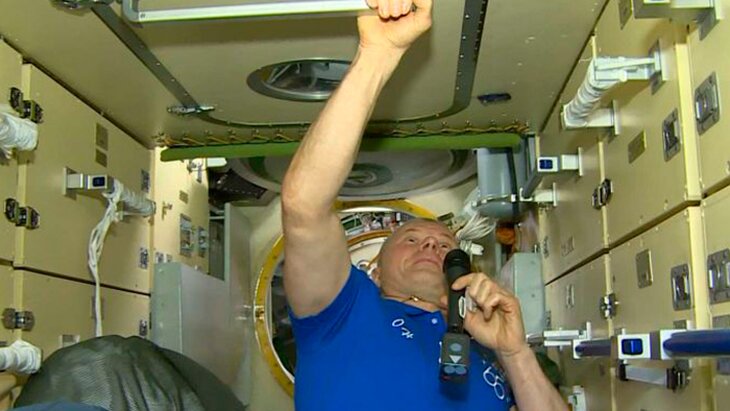 До этого космонавт жил в модуле "Звезда", однако он уступил свою каюту члену киноэкипажа – актрисе Юлии Пересильд.