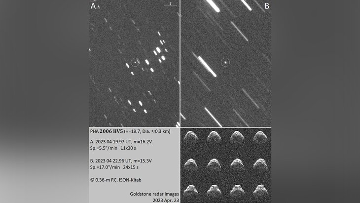 "Один из самых интересных околоземных астероидов этого месяца – 2006 HV5, 26 апреля подлетевший к нам на расстояние 2,4 миллиона километров (в 6,3 раза дальше Луны). <…> Текущее сближение с 2006 HV5 – одно из лучших в XXI веке", – говорится в сообщении.