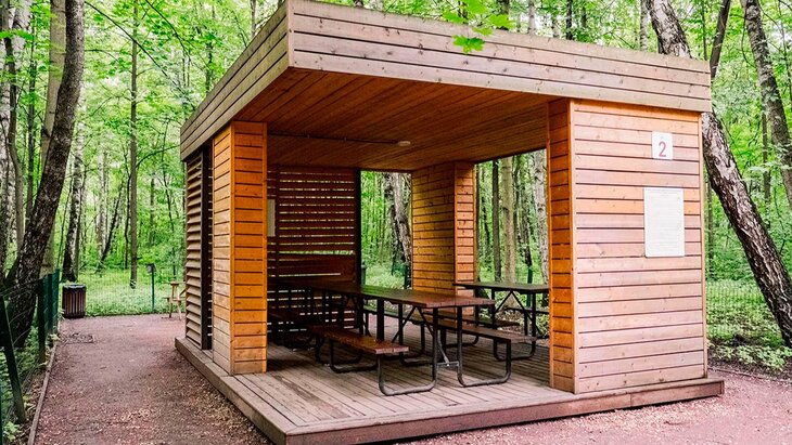 В лесопарке "Кусково" расположены 27 пикниковых зон, рассчитанных на 4–8 человек. Там установлены столы, скамейки, мангал, ящики для золы и песка. Беседки работают с 10:00 до 22:00.