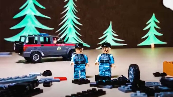 Среди игрушек представлены миниатюрные модели автотехники госслужащих, включая радиоуправляемые машинки, конструктор, а также наборы солдатиков и раций.