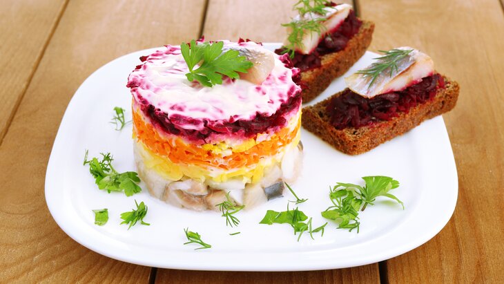Среди них оказалась селедка под шубой. Из-за майонеза это блюдо опасно для тех, у кого преддиабетическое состояние или диабет.