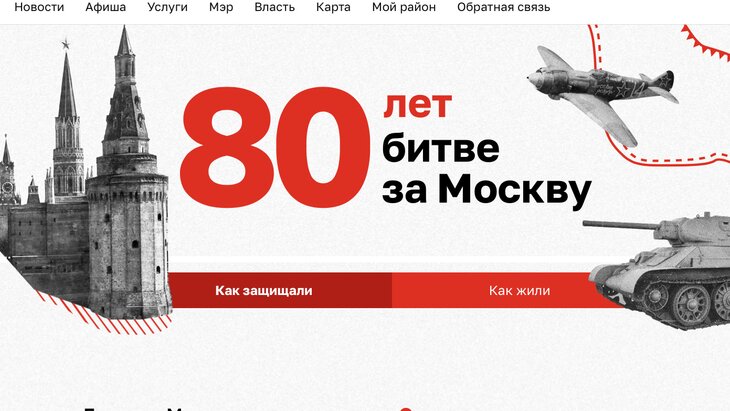 Портал мэра и правительства Москвы подготовил специальный проект, посвященный битве за Москву, которой в этом году исполняется 80 лет.