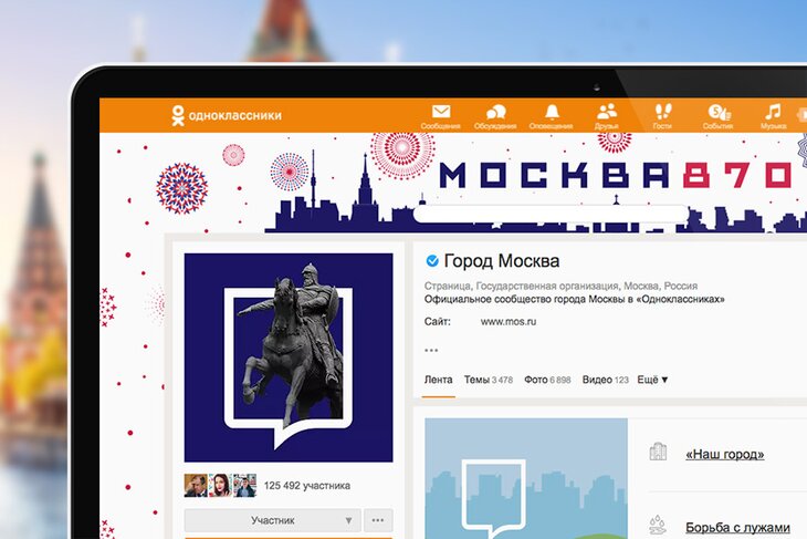 Это группа администрации города, и здесь есть все, чем дышит и живет столица. Последние новости, анонсы мероприятий, виджет для услуг портала mos.ru – все это можно найти, не выходя из "Одноклассников". Кстати, программа празднования Дня города тоже опубликована здесь.