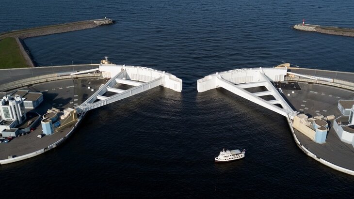Затворы Комплекса защитных сооружений в Санкт-Петербурге закрыли из-за угрозы наводнения, сообщает дирекция КЗС.