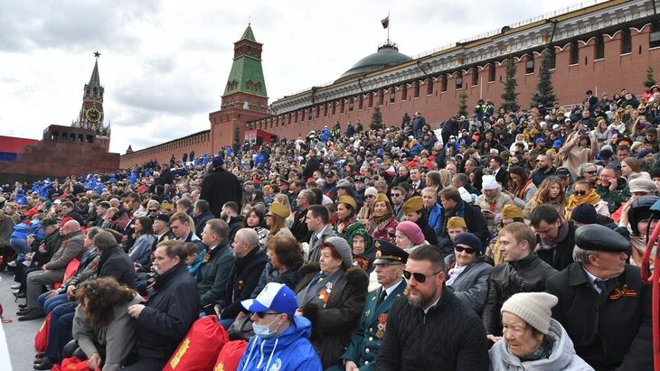 ОбществоПамятные наборы с пледами получили гости парада Победы на Красной площади