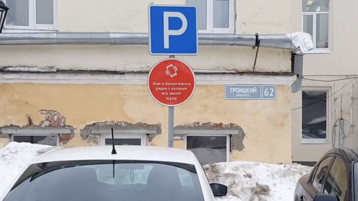 Она рассказала, что знак установило у своего офиса муниципальное предприятие "Горсвет". В красном круге красуется надпись "Знак в Архангельске, рядом с которым все звонят маме".