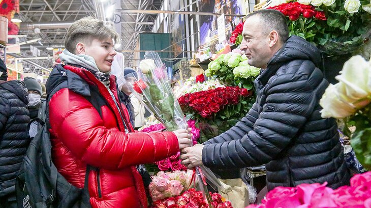 ОбществоЦены на цветы выросли на Рижском рынке Москвы накануне Дня всех влюбленных