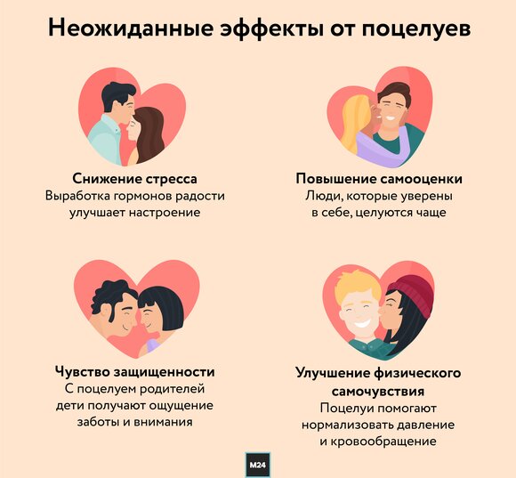 Наибольшее влияние на эмоциональную сферу оказывают поцелуи не только любимых людей, но и родителей, детей. "От родителей дети с поцелуем получают материнскую и отцовскую любовь, ласку, ощущение заботы и внимания. Также чувство защищенности, что чрезвычайно важно для гармоничного развития личности ребенка", – подчеркнула Игонина.