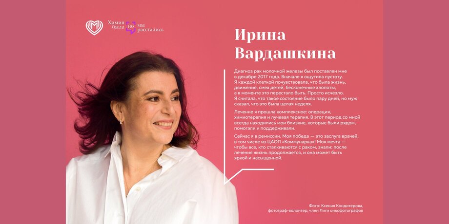 В столичных центрах амбулаторной онкологической помощи открылась фотовыставка "Химия была, но мы расстались", приуроченная ко Всемирному дню борьбы с раком молочной железы, сообщили Москве 24 в департаменте здравоохранения столицы.