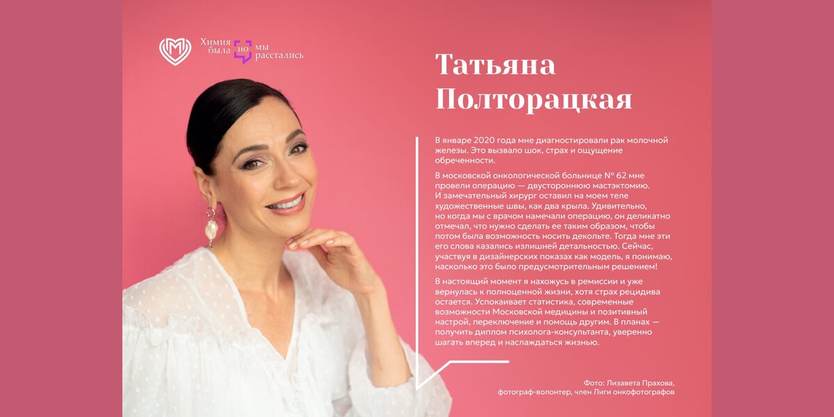 Героини съемки – женщины, победившие болезнь и находящиеся в ремиссии. Они рассказали свои истории и поделились мыслями и эмоциями, которые были с ними на пути к выздоровлению.