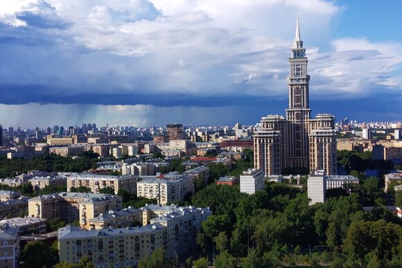 На столицу надвигаются гроза, ливневый дождь и шквалистый ветер. Об этом сообщает главк МЧС по Москве.