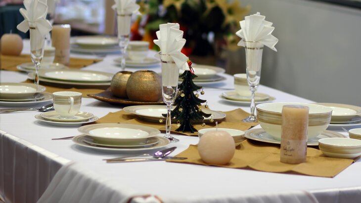 "Скатерть и салфетки могут быть однотонными или декорированными: главное – учитывать, что бабочки и цветы будут гораздо менее уместны, чем новогодняя и зимняя тематики. Посуда также не должна быть непременно белой", – отметила специалист.