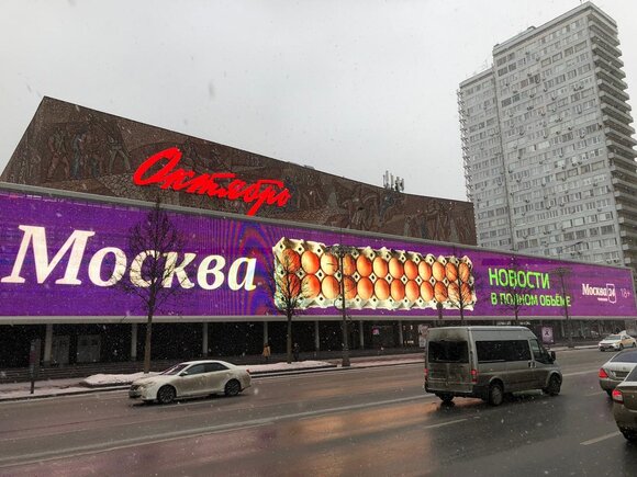 На медиафасаде кинотеатра "Октябрь" и остановках в центре столицы появились баннеры, которые утверждают, что телеканал Москва 24 не экономит на новостях.
