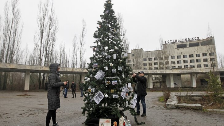 ОбществоНовогоднюю елку установили в Припяти впервые после аварии на ЧАЭС