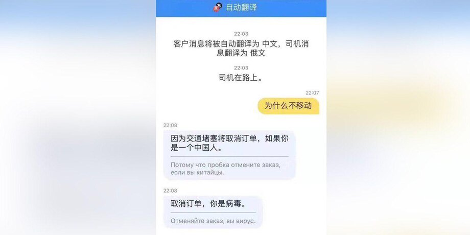 Скриншот переписки водителя такси и пассажира из Китая оказался в распоряжении Москвы 24. "Отменяйте заказ, если вы китайцы", – написал таксист в ответ на бронь машины.