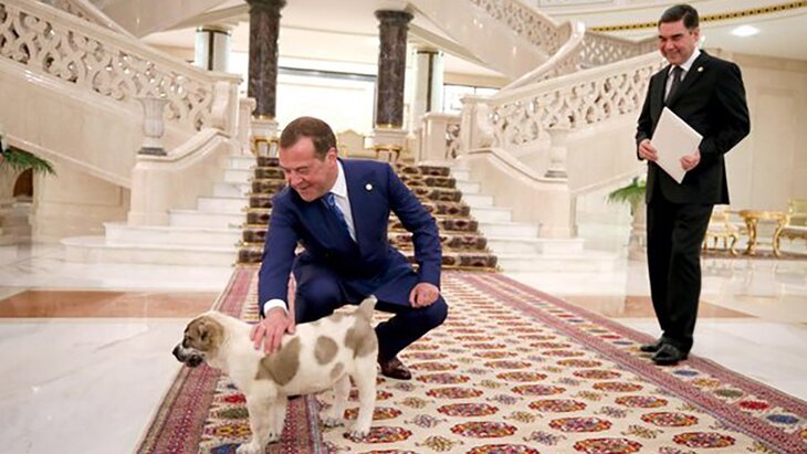 Ранее президент Туркмении Гурбангулы Бердымухамедов подарил Дмитрию Медведеву щенка алабая. Щенок сразу же улегся в ногах российского премьера. На вопрос Медведева, как назвать питомца, туркменский лидер развел руками, дав понять, что выбор клички остается за новым хозяином.