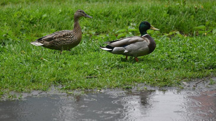 На природных территориях столицы зимуют около 9,7 тысячи водоплавающих птиц. 96% из них составляют кряквы – всего 9 369 особей. Их можно легко узнать по ярко-зеленой голове и фиолетовой полоске на крыльях. Самочки пестрые, коричневато-бежевые.