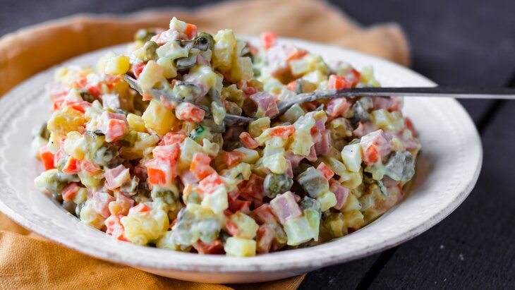 Оливье или другие новогодние салаты можно хранить 2–3 дня, рассказал эксперт по здоровому питанию, телеведущий, шеф-повар Сергей Синицын в интервью радио Sputnik.