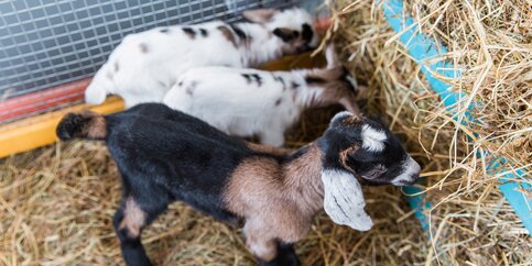 Четверо козлят и трое ягнят родились в семейно-образовательном центре "Городская ферма" на ВДНХ. Курдючный баран Елисей стал отцом двух овечек и ягненка, две козочки родились от англо-нубийского козла Малыша, еще два разнополых детеныша – от зааненского козла Ивана.