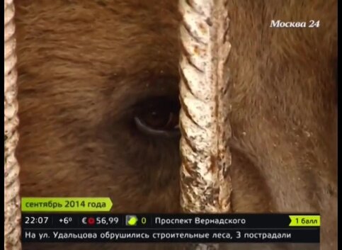 Дикую медведицу в подмосковных Люберцах держат в маленькой клетке, передает телеканал "Москва 24".