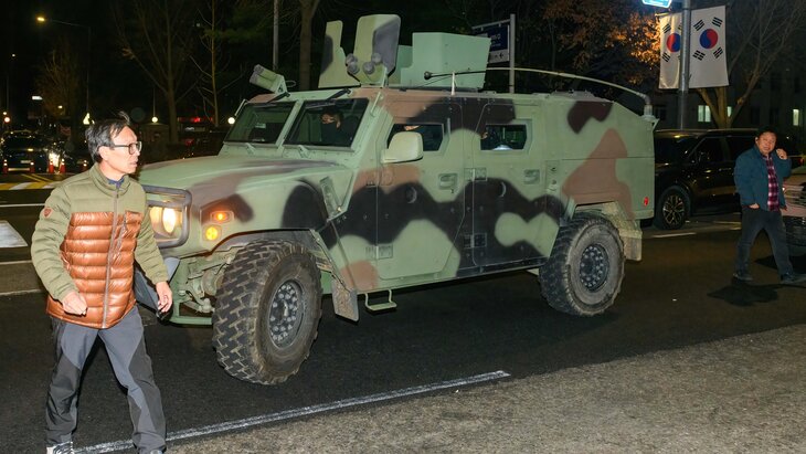 На фоне введения в Южной Корее военного положения на улицах южнокорейской столицы появилась военная техника. Соответствующие фотографии опубликовало агентство Reuters.
