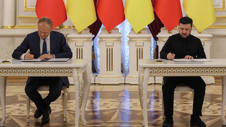 Украинский президент Владимир Зеленский и польский премьер Дональд Туск подписали письмо о намерениях по совместному польско-украинскому производству оружия. Об этом в эфире телеканала TVP Info рассказал сам Туск.