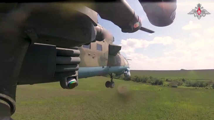 Уточнялось, что экипажи ударно-разведывательных вертолетов применили авиационный противотанковый ракетный комплекс "Вихрь-М".