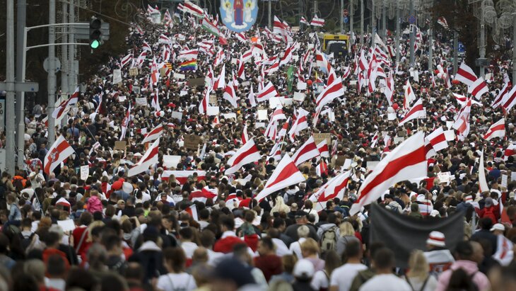Акции протеста под названием "Марш единства" проходят в воскресенье, 6 сентября, в разных городах Белоруссии. В Минске десятки тысяч человек подошли к Дворцу независимости – резиденци Александра Лукашенко.