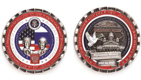 Интернет-магазин Белого дома выпустил памятную монету в честь встречи Владимира Путина и Дональда Трампа в Хельсинки с тремя опечатками. Сувенир предлагают приобрести на официальном сайте за 100 долларов.