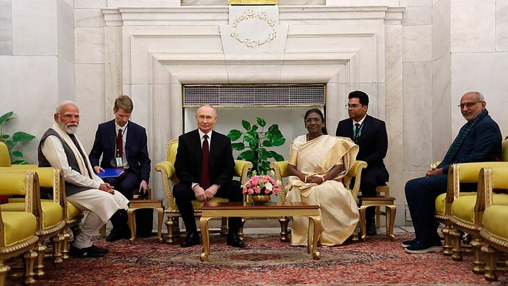 Визит Путина в Индию проходил 4–5 декабря. В рамках поездки он провел переговоры в премьером Индии Нарендрой Моди и встречу с президентом Драупади Мурму.