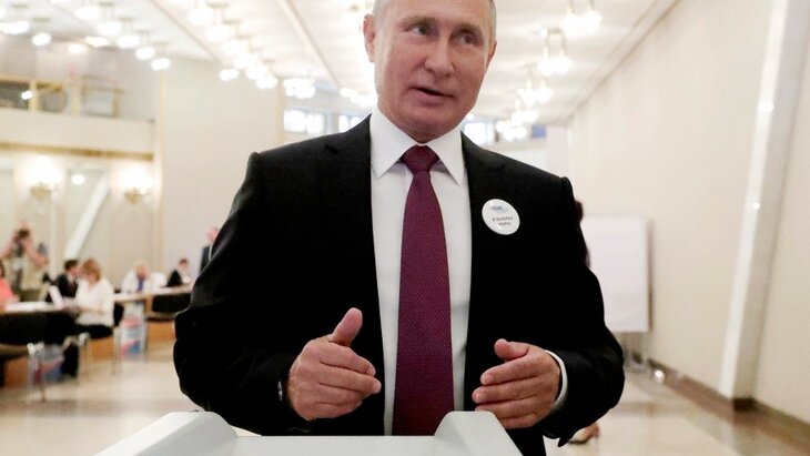 Владимир Путин проголосовал на выборах мэра столицы на участке номер 2151 в Российской академии наук на улице Косыгина.