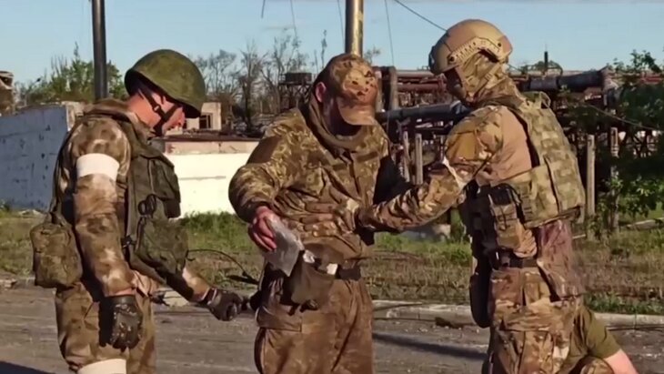 Ранее, 17 мая, Минобороны РФ опубликовало кадры сдачи в плен боевиков с территории завода "Азовсталь" в Мариуполе. Официальный представитель ведомства Игорь Конашенков рассказал, что за сутки оружие сложили 265 националистов, среди которых 50 тяжело ранены.