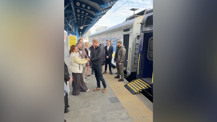 Он опубликовал видео, на котором запечатлено, как принц выходит из прибывшего поезда. Его встречала крупная делегация.