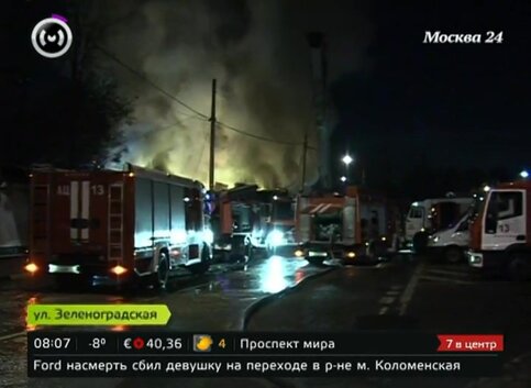 В районе платформы "Моссельмаш" на улице Зеленоградская произошел пожар. Огонь вспыхнул в помещении продуктового магазина.