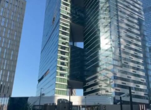 Очевидцы поделились видео с места падения беспилотника в "Москва-Сити" после очередной попытки атаки Киева по российской столице. БПЛА повредил фасад одной из высоток делового центра.