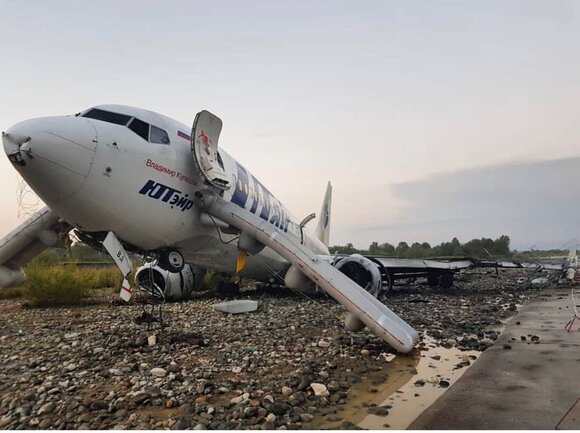 Пассажирский самолет компании Utair, летевший из Москвы в Сочи, скатился в русло реки после посадки. В результате случившегося повредились стойки шасси и крыло, произошло возгорание левого двигателя.