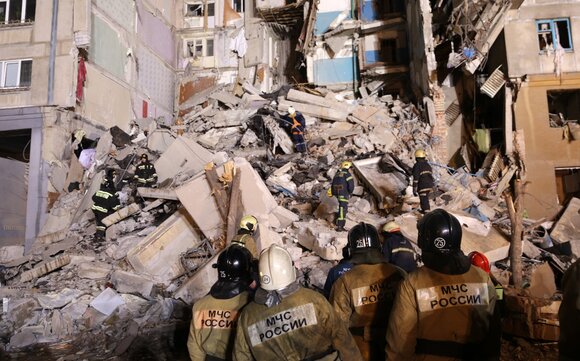 Взрыв газа в жилом 12-подъездном доме в Магнитогорске произошел 31 декабря. В результате взрыва обрушился подъезд дома. Спасателям удалось спасти 6 человек, в том числе двоих детей. Работу осложняет низкая температура в Магнитогорске.