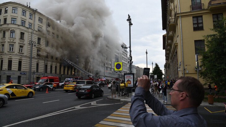 Пожар произошел по адресу: улица Тверская, дом 24. Очевидцы отметили, что из окон валил густой черный дом. Первоначально площадь пожара составила 50 квадратных метров, однако затем она разрослась до 300.