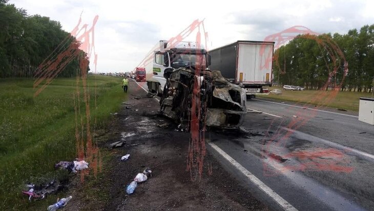 Уточняется, что загорелся легковой автомобиль, водитель и пять пассажиров которого скончались до приезда скорой помощи.
