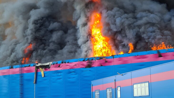 По информации МЧС, из здания вышли более тысячи сотрудников. В ведомстве позже сообщили об обрушении одной из стен горящего склада.