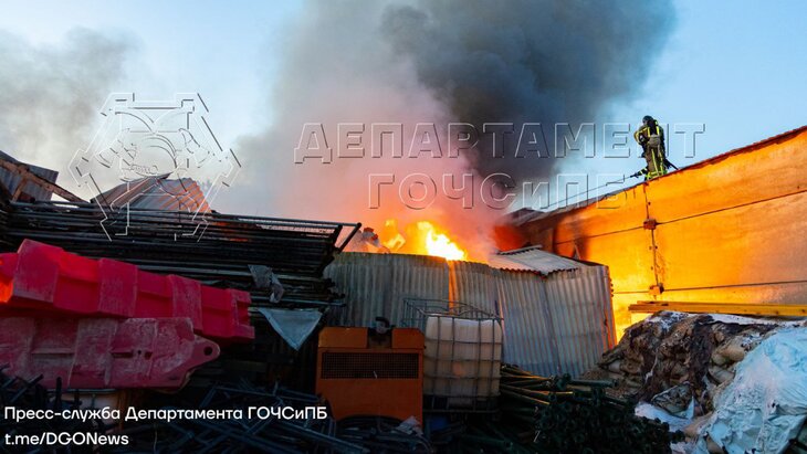 В МЧС сообщили, что огонь объял здание одноэтажного складского ангара.