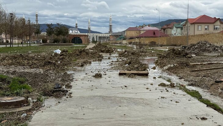 По данным администрации, значительный объем водных и грязевых масс обрушился на селезащитные сооружения на улице Мамедбекова. Коммунальные службы оперативно приступили к их очистке.