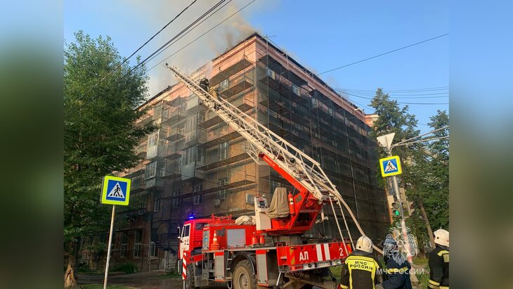 Из здания эвакуировали жильцов. Пожарные локализовали возгорание на площади 300 квадратных метров. Специалисты применяют высотную технику для ликвидации пожара на крыше, а также тактическую вентиляцию для удаления дыма из подъездов.