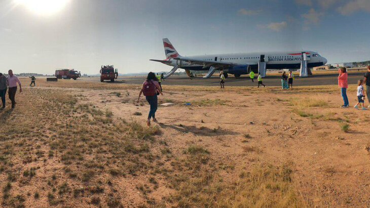 Самолет выполнял рейс из лондонского аэропорта Хитроу. Пассажиров эвакуировали при помощи надувного аварийного трапа.