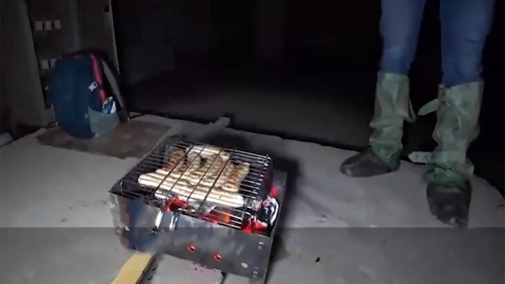 Четверо молодых людей проплыли примерно 400 метров на надувных лодках и пожарили шашлыки в подземке.